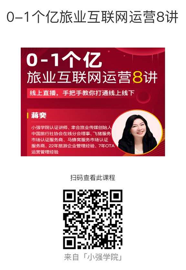 1、小强学院:恭喜蒋奕老师已在小强学院完成【0-1个亿旅业互联网运营8讲】课程,将22年的旅游管理、及7年OTA运营管理经验,分享给同业。就此,能否介绍一下课程的含金量?
